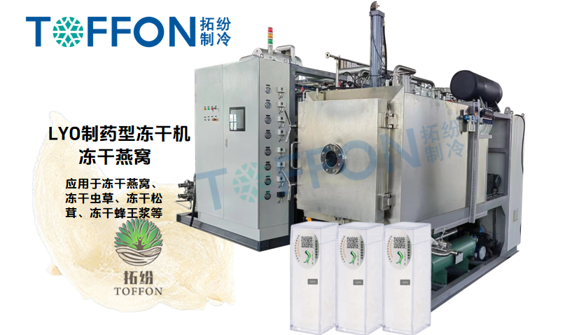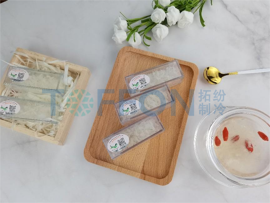 食品冻干机通过真空低温冻干机,能够有效去除燕窝中>95%的水分,同时保持其原有的形状、色泽和营养成分。