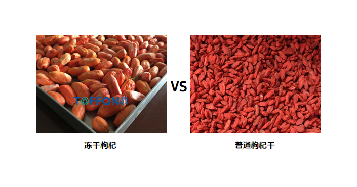 宁夏枸杞采摘后若保存不当,易发生霉变、营养流失等问题,影响其品质和价值。传统的干燥方式在高温下会破坏枸杞中的维生素、多酚物质等,影响其风味,导致枸杞的品质下降。冷冻干燥机能够快速将宁夏枸杞冷冻至设定温度,确保枸杞细胞内的水分迅速结冰,避免了因缓慢冷冻而导致的细胞破裂,有效保护了枸杞的细胞结构。大程度地保留枸杞的营养成分、色泽、形状和风味。